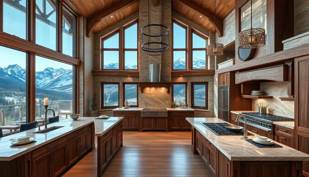 Luxury mountain home kitchens incorporate advanced appliances and smart technology, enhancing culinary experiences. This blend creates efficient, stylish spaces where cooking becomes a joy.