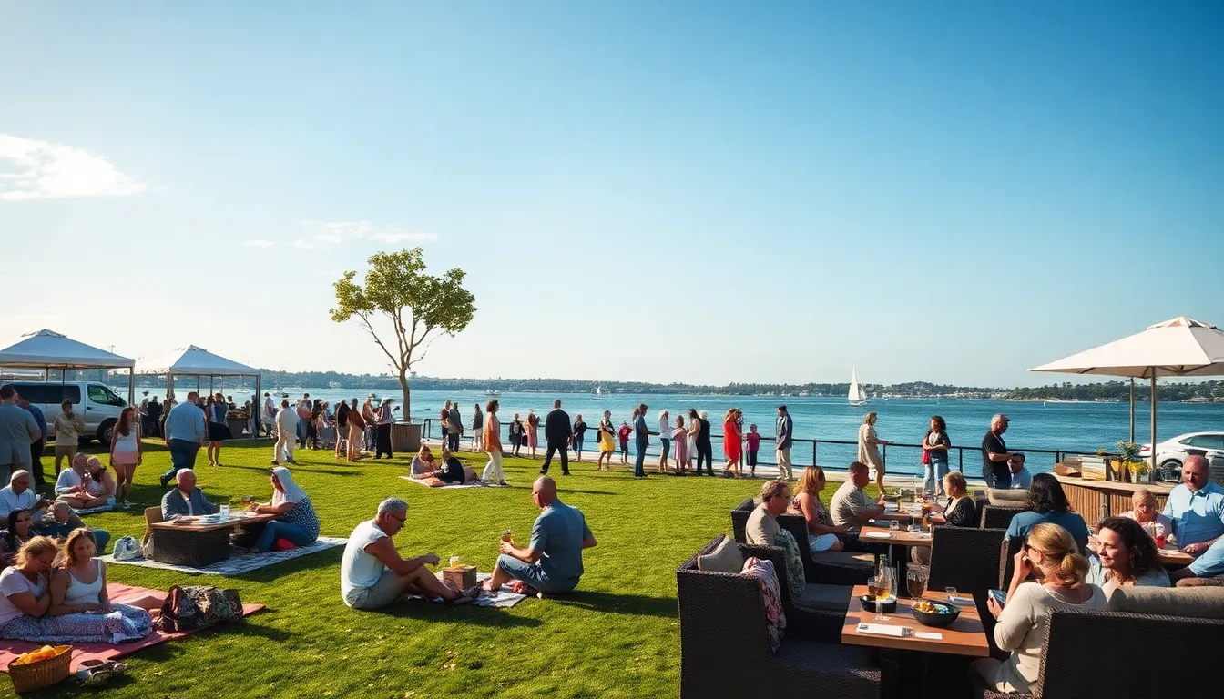 Food options cater to diverse tastes, featuring local vendors and seasonal offerings. Guests often savor freshly prepared meals while watching the gentle ripple of the water. Beverages range from craft beers to refreshing cocktails, promoting a laid-back vibe.